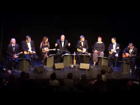 Today, after many years, the Orchestra finds that wherever they go, people are now playing ukuleles, often in groups. Many of these enthusiasts tell the Orchestra that they were inspired to play the instrument after seeing and hearing this, the original Ukulele Orchestra. And now there are many ukulele orchestras, some acknowledging the pioneering work of the UOGB, others claiming ignorance of this rich history, but none of them existing before this, the original Ukulele Orchestra.